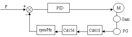 PG脈沖輸入范圍為50-2048p/r,測(cè)速傳感器為4p/r。以cd156所設(shè)定的數(shù)值進(jìn)行內(nèi)部倍率換算。