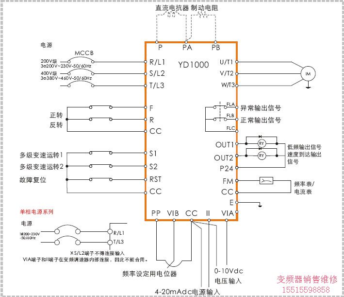 河南鄭州優(yōu)利康變頻器維修 優(yōu)利康變頻器YD1000維修 YD1000接線圖