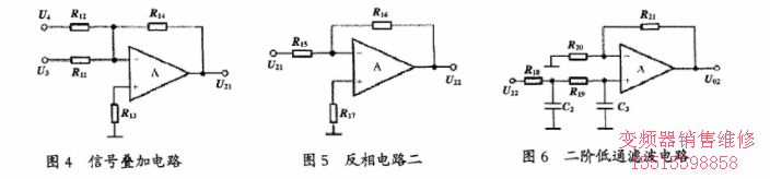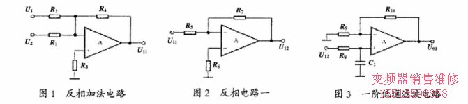 由于信號(hào)通過疊加電路后相位發(fā)生了改變",所以在此使用反相電路將信號(hào)的相位復(fù)原反相電路選用反相比例放大電路,電路圖見圖s.