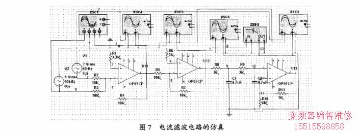 采用信號(hào)發(fā)生器模擬噪音和變頻 器信號(hào),通過電壓濾波電路和電流濾波電路,比較后留下有效信號(hào)用于檢測(cè).這兩個(gè)濾波電路由信號(hào)疊加電路、反相電路、一階有源低通濾波電路和二階有源低通濾波 電路組成,其中運(yùn)算放大器選擇OP07芯片.電路中各個(gè)元件的參數(shù),通過使用Multisim10軟件進(jìn)行仿真獲得.然后制作出硬件電路進(jìn)行實(shí)驗(yàn)調(diào)試,比較 終濾波電路能基本滿足預(yù)期的濾波效果,且輸出信號(hào)的滯后時(shí)間在允許的范圍內(nèi)。