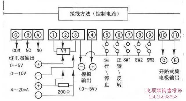 2、由于控制電路的頻率輸入信號是微小電流,所以在接點(diǎn)輸入的場合,為了防止接觸不良,微小信號接點(diǎn)應(yīng)使用兩個并聯(lián)的節(jié)點(diǎn)或使用雙生接點(diǎn)。