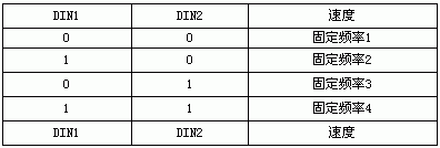 Multiverte共可設定4級頻率,從固定頻率1到4,這4個頻率的數值通過面板輸入設定。通過兩個開關量輸入點DIN1,DIN2組成二進制編碼,來選擇這4個頻率。