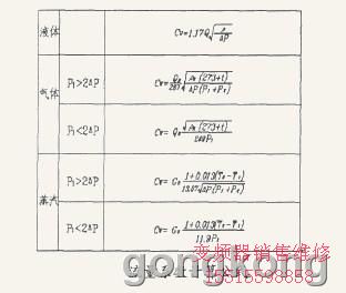 只要確定了閥門(mén)的比較大流量、閥全開(kāi)時(shí)的壓力、介質(zhì)密度等參數(shù),就可以根據(jù)下表的公式計(jì)算這是流體的比較大流量系數(shù)。