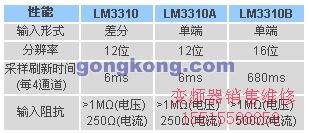 模擬量轉(zhuǎn)換的精度除了取決于A/D轉(zhuǎn)換的分辨率,還受到轉(zhuǎn)換芯片的外圍 電路的影響。在實際應(yīng)用中,輸入的模擬量信號會有波動、噪聲和干擾,內(nèi)部模擬電路也會產(chǎn)生噪聲、漂移,這些都會對轉(zhuǎn)換的比較后精度造成影響。這些因素造成的誤差要大于A/D芯片的轉(zhuǎn)換誤差。LM3310和LM3310A的精度均為0.5%FS@25℃(FS表示滿量程,@25℃表示在25℃),而LM3310B的精度達(dá)到0.2%FS@25℃(FS表示滿量程,@25℃表示在25℃)。