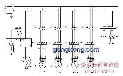 參照XJID3型精密帶刀片皮機系統(tǒng)結(jié)構(gòu)提出的電氣自動化要求,主電路原理設(shè)計參見圖2。控制電路原理圖參見圖3。