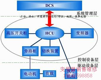 HCU將高壓變頻器、旁路切換裝置、高壓開(kāi)關(guān)等相關(guān)設(shè)備整合為一種驅(qū)動(dòng)設(shè)備。即:對(duì)DCS而言,不再存在工頻/變頻運(yùn)行方式切換,控制對(duì)象的轉(zhuǎn)速、開(kāi)度切換,保護(hù)聯(lián)鎖邏輯改造等問(wèn)題。而成為一個(gè)控制引風(fēng)機(jī)啟停、實(shí)現(xiàn)其負(fù)荷率隨機(jī)組負(fù)荷調(diào)整,爐膛負(fù)壓過(guò)程控制量穩(wěn)定的問(wèn)題。由于DCS與引風(fēng)機(jī)控制設(shè)備之間的接口未變,因此,DCS內(nèi)原有的引風(fēng)機(jī)聯(lián)鎖、保護(hù)等邏輯仍然有效。HCU會(huì)自動(dòng)根據(jù)運(yùn)行方式,設(shè)備狀態(tài)等信息自動(dòng)識(shí)別故障點(diǎn)情況和安全等級(jí),保證發(fā)給DCS的狀態(tài)信號(hào)正確有效,避免誤動(dòng)、拒動(dòng)等情況的發(fā)生。