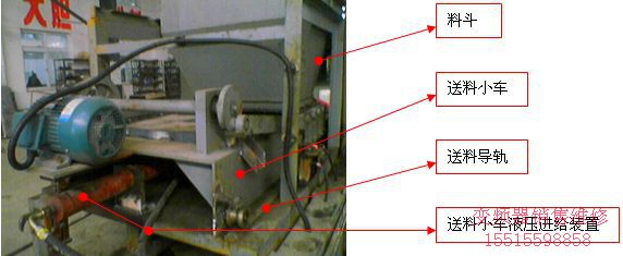 送料:按比例搭配好的原料經(jīng)料斗裝入小車,小車經(jīng)導(dǎo)軌前進到磚模上方開始布料。
