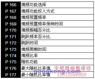 跳躍頻率=中心頻率 * P170 * P171,過大的跳躍頻率可能產(chǎn)生過電壓、過轉(zhuǎn)矩等異常警告跳脫;