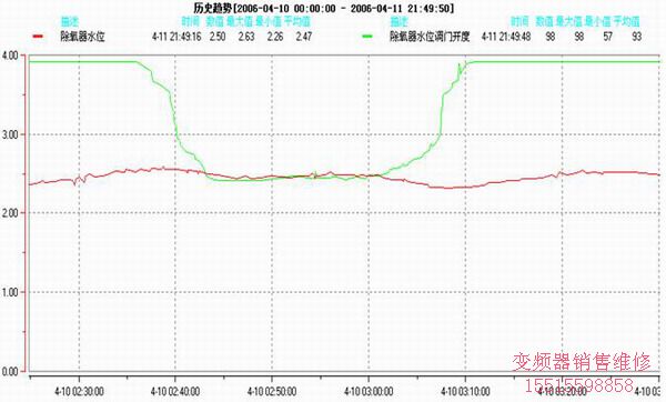 在圖3中,采用雙回路控制,主要是考慮調(diào)整門調(diào)節(jié)特性與變頻器存在較大差異,單一控制回路的調(diào)節(jié)效果不好;通過變頻運(yùn)行后的實(shí)際效果,這種控制回路設(shè)計(jì)調(diào)節(jié)特性很好,兩套回路切換平穩(wěn)。