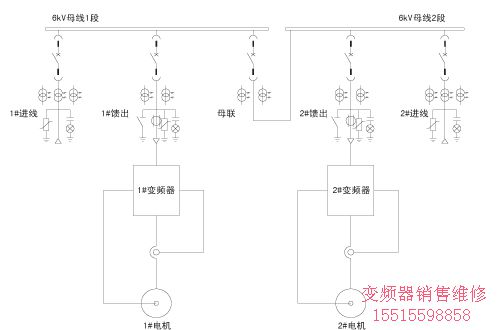 更新用戶現(xiàn)場的高低壓配電系統(tǒng),采用PLC電控系統(tǒng),采用高壓變頻器拖動(dòng)系統(tǒng),更換電機(jī)和減速機(jī)。