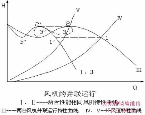 圖4:風(fēng)機(jī)的并聯(lián)運(yùn)行圖