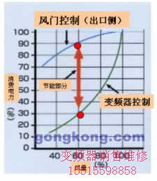 對(duì)于離心風(fēng)機(jī)和水泵,采用變頻器控制電機(jī)轉(zhuǎn)速,替代原擋板和閥門控制,改變?cè)趽醢搴烷y門上消耗大量電能的情況;根據(jù)離心機(jī)工作原理,相似情況下流量、揚(yáng)程和消耗功率與轉(zhuǎn)速的一次、二次、三次方成正比,改變風(fēng)量和流量時(shí),降低電機(jī)轉(zhuǎn)速,可節(jié)約大量電能。