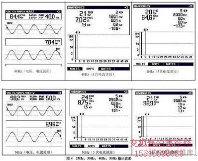 d)輸出電壓波形在額定負(fù)載時(shí)尚好,低于25Hz以下畸變突出;