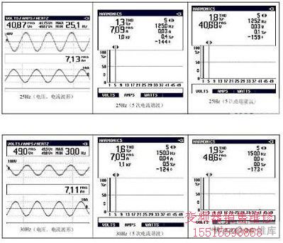 3.2 IGBT直接串聯(lián)高壓變頻器25Hz、30Hz、40Hz、50Hz電壓、電流輸出波形及諧波圖: