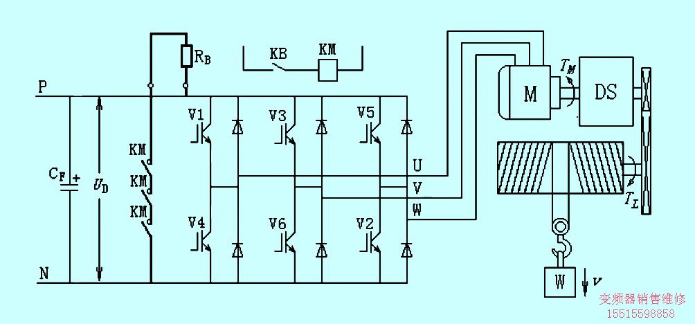 由控制吊鉤下行的接觸器的輔助觸點(diǎn)或通過中間繼電器KB來進(jìn)行控制。使吊鉤在每次向下運(yùn)行時(shí),制動(dòng)回路就處于放電狀態(tài)。
