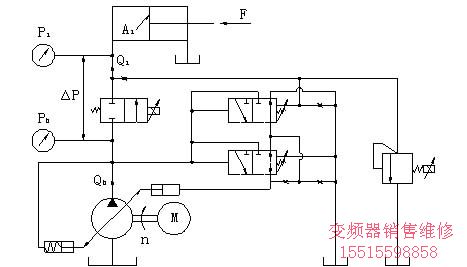 △P:比例調(diào)速閥兩端的壓力差 P:油泵壓力 Q:油泵流量 n:電動機(jī)轉(zhuǎn)速