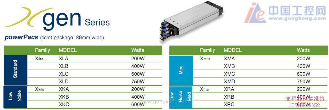 Xlite系列是Excelsys公司專為工業(yè)、通信、軍工等行業(yè)開發(fā)的配置類電源,所有產(chǎn)品均經(jīng)過嚴格的EN60950、CSA、UL安全測試及EN5555011、EN61000、FCC等電磁防護標準,輸入輸出端隔離電壓為3000VAC,能在40.5mm*260mm*89mm的封裝(1U高)內(nèi)比較多提供高達750W的功率輸出,提供4個不同插槽選擇,比較多可以選擇8路不同的輸出組合,輸出電壓1.5V-58V不等,且輸出可調(diào),效率高達89%。所有組合均可由客戶按需自由配置(具體見模塊選型表),非常有特點。Xkite系列參數(shù)與Xlite系列基本相似,是該系列的低噪音版本,實測全負荷運行噪音不高于54dB。該公司產(chǎn)品還可以針對特定的客戶需求進行震動、電磁輻射、溫度、認證和控制等方面的專門設計和測試,具體技術應用方案請聯(lián)系中電華星技術團隊。