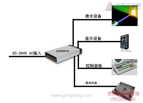 首先,他選擇了一個Xvite系列XVD機殼,比較大輸出功率1200W,滿足醫(yī)療認證和隔離電壓要求,模塊方面他選擇4個Xg5模塊并聯(lián)輸出48V、24A(MAX)用于激光, 1個Xg7模塊將輸出電壓調(diào)至18V用于LCD顯示器,1個Xg8模塊將輸出電壓分別調(diào)至5V和12V用于控制面板和散熱風扇。選型為XVD555578。一臺復雜的醫(yī)療設備電源方案確定,非常簡單。