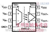 2、3腳為信號輸入腳,1、4腳為輸入側(cè)供電端;6、7腳為差分信號輸出腳,8、5腳為輸出側(cè)供電端。