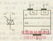 雙向晶閘管除了一個電極G仍然叫控制極外,另外兩個電極通常不再叫陽極和陰極,而統(tǒng)稱為主電極T1和T2。雙向晶閘管是一種N-P-N-P-N型5層結(jié)構(gòu)的半導體,其符號和內(nèi)部結(jié)構(gòu)圖見圖1-1。
