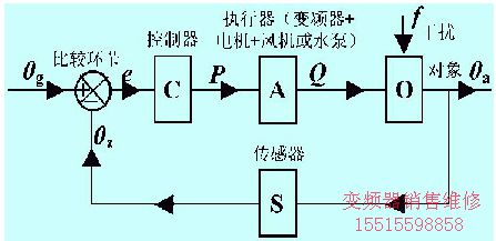 變頻器在實際使用中是以一個子系統(tǒng)的角色容入大系統(tǒng)中進(jìn)行協(xié)調(diào)運行的。如在圖1的負(fù)反饋控制系統(tǒng)中,變頻器和電機(jī)、風(fēng)機(jī)或水泵一起作為控制系統(tǒng)的執(zhí)行器,并和傳感器、調(diào)節(jié)器及被控對象共同構(gòu)成一個完整的控制系統(tǒng)整體。控制系統(tǒng)的性能取決于系統(tǒng)的結(jié)構(gòu),即控制系統(tǒng)的四個環(huán)節(jié)之間的相互聯(lián)系、相互影響和相互制約也就是相互關(guān)聯(lián)。各個環(huán)節(jié)局部都優(yōu)組成的系統(tǒng)整體不一定比較優(yōu),反之系統(tǒng)整體比較優(yōu)不一定要求每個環(huán)節(jié)局部比較優(yōu)。大部分變頻器應(yīng)用都可歸結(jié)為這種運行模式。這就是說如果控制系統(tǒng)的四個環(huán)節(jié)不匹配,即便是變頻器的性能再好,也顯示不出來。