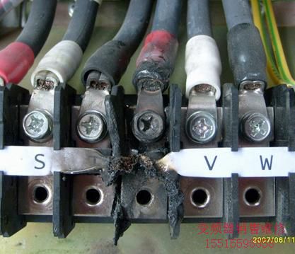 問(wèn)題: 變頻器R、S、T、U、V、W接線端沒(méi)有打緊,導(dǎo)致接線處接觸電阻大端子過(guò)熱使用一段時(shí)間端子損壞或炸機(jī).