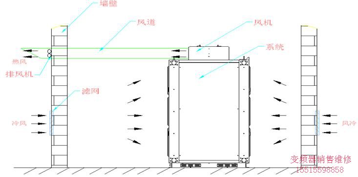 a) 直排熱風(fēng)式適應(yīng)于市政供水、燃?xì)獍l(fā)電等運(yùn)行環(huán)境粉塵少、變頻容量小的應(yīng)用現(xiàn)場(chǎng);