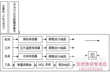 由圖1可以看出硬件部分主要由振動(dòng)傳感器、溫度傳感器、功率傳感器、信號(hào)調(diào)理模塊、MQL系統(tǒng)和數(shù)據(jù)采集卡等組成。