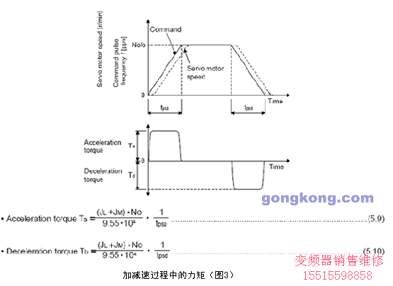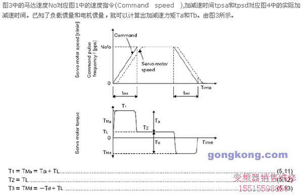 圖3中的馬達(dá)速度No對(duì)應(yīng)圖1中的速度指令(Command speed ),加減速時(shí)間tpsa和tpsd對(duì)應(yīng)圖4中的實(shí)際加減速時(shí)間。已知了負(fù)載慣量和電機(jī)慣量,就可以計(jì)算出加減速力矩Ta和Tb。由圖3所示。