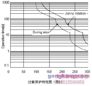 以MR-J2S-10A~MR-J2S-100A過載保護(hù)特性圖為例進(jìn)行說(shuō)明,當(dāng)伺服電機(jī)輸出力矩為200%額定力矩時(shí),如上圖所以電機(jī)運(yùn)行大約100s后伺服放大器內(nèi)的IPM就會(huì)因?yàn)檫^熱而出現(xiàn)過載報(bào)警。