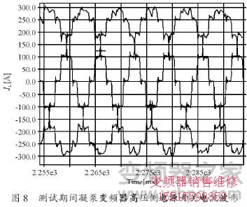 一般凝泵變頻器及與之配套的整流變均會(huì)安置在同一設(shè)備室內(nèi),現(xiàn)場(chǎng)試驗(yàn)時(shí)與變頻器配套的整流變有著如下一些特點(diǎn):
