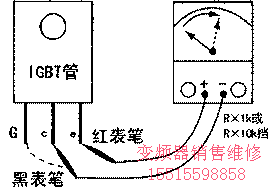 用MF500型萬用表R×10k擋,紅表筆接e極,黑表筆接c極時,阻值為無窮大;若這時用手指同時接觸一下黑表筆與G極,阻值立即降至110kΩ;若用黑表筆觸一下G極,再次測得c、e極間正向電阻已降為16kΩ左右。[    TEL:15515598858]