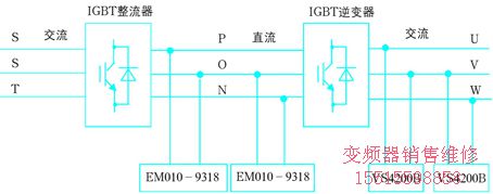 該變頻器采用了某公司兩種型號(hào)規(guī)格的電壓傳感器,一種是em010系列中的em010-9318,另一種是vs系列中的vs4200b,兩種電壓傳感器在變頻器中的使用情況見圖1所示。