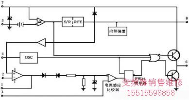 Unitrode公司的UC3842是一種高性能固定頻率電流型控制器,包含誤差放大器、PWM比較器、PWM鎖存器、振蕩器、內(nèi)部基準(zhǔn)電源和欠壓鎖定等單元,其結(jié)構(gòu)圖如圖5所示。