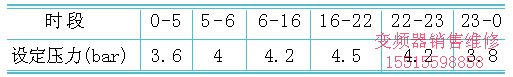 根據(jù)市區(qū)實際用水情況,安裝了pc全自動調(diào)節(jié)程序,各用水時段壓力調(diào)整如附表所示:
