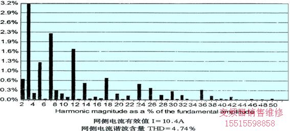 4.5 網(wǎng)側(cè)電流(a相)諧波分析圖表(如圖8所示)