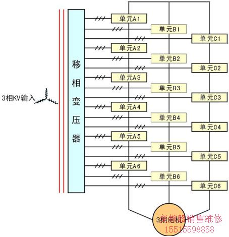 工作原理:系統(tǒng)輸入側(cè)采用移相變壓器與各個功率單元連接,輸出側(cè)通過將功率單元串接給交流電動機供電。其中各單元采用常規(guī)的交—直—交電壓源逆變器拓撲結構,igbt的通斷采用pwm控制方式。系統(tǒng)用低壓器件實現(xiàn)高壓輸出,且不存在電壓均衡問題,不會對器件構成高壓威脅。