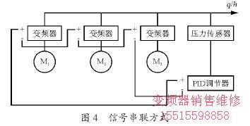 9)多臺水泵并聯(lián)恒壓供水時(shí)采用信號串聯(lián)方式只用一個(gè)傳感器,其優(yōu)點(diǎn)如下。