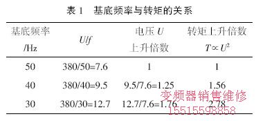 (2)為什么減小基底頻率提高起動轉(zhuǎn)矩是比較有效的呢?具體如表1 所列。