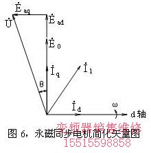 忽略定子電阻和漏抗以后,可以得到永磁同步電機(jī)簡(jiǎn)化的矢量圖如圖六。