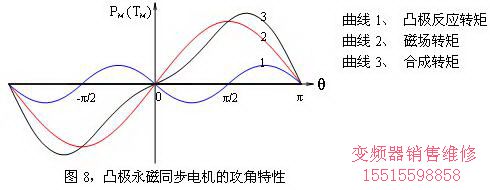 由于凸極反應(yīng)轉(zhuǎn)矩的影響,隱極永磁同步電機(jī)的功角特性變差。