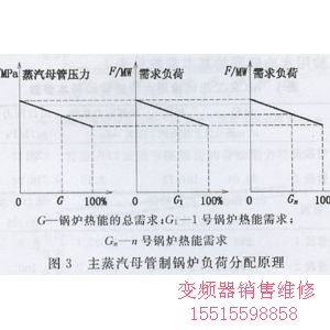 對于主蒸汽為母管制的系統(tǒng),分散控制系統(tǒng)依據(jù)主蒸汽母管的蒸汽壓力信號對各臺鍋爐進(jìn)行負(fù)荷分配(各臺鍋爐負(fù)荷分配的原理見圖3),從而獲得汽輪機(jī)運(yùn)行所需的蒸汽量,所以主蒸汽母管的蒸汽壓力信號必須接入公用系統(tǒng)網(wǎng)絡(luò)DCS0。即從通信數(shù)據(jù)傳輸來說,對于圖2的系統(tǒng)結(jié)構(gòu),主蒸汽母管壓力信號需要經(jīng)過公用系統(tǒng)網(wǎng)絡(luò)和網(wǎng)關(guān),再送到每臺鍋爐的控制器,而網(wǎng)關(guān)為薄弱環(huán)節(jié),一旦發(fā)生故障,將會直接影響機(jī)組的安全、穩(wěn)定運(yùn)行,可能造成數(shù)據(jù)通信延時,使調(diào)節(jié)品質(zhì)下降。