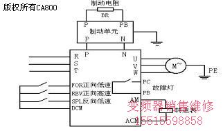 2、 制回路輸入端子中,F(xiàn)OR為正向低速信號,REV為正向高速,SPL為反向低速。