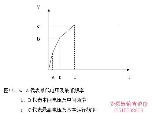 今年,為了進(jìn)一步降低成本,提高產(chǎn)品競(jìng)爭(zhēng)力,我公司又引進(jìn)了新型變頻電機(jī),新型電機(jī)要求變頻器提供手動(dòng)V/F曲線調(diào)節(jié)功能,ENERSON公司又為我司研制了新型變頻器,增加了多段V/F曲線功能。在工業(yè)洗衣機(jī)中,要求V/F曲線如下: