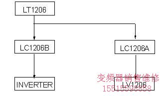 輕柴油泵采用一開一備的配置方式,共有P1205A/B兩臺泵。在正常情況下,一臺運行另一臺備用,主、備泵的切換通過人工方式手動實現(xiàn)。在供電控制方式上,P1205A實行常規(guī)電氣控制,主電源直接供給電動機,P1205B實行變頻調(diào)速控制,主電源經(jīng)過變頻后送給電機。系統(tǒng)調(diào)節(jié)參數(shù)為中間產(chǎn)品罐液位,測量位號為LT1206,PID調(diào)節(jié)回路調(diào)節(jié)閥LV1206。用控制電機轉(zhuǎn)速和調(diào)節(jié)閥開度使液位LT1206穩(wěn)定在給定值上,DCS上將原有的LC1206調(diào)節(jié)器組態(tài)位號改為LC1206A,新增一個PID調(diào)節(jié)器位號LC1206B(其組態(tài)內(nèi)容與LC1206A一致),用LC1206B和變頻器INVERTER控制電機轉(zhuǎn)速或用LC1206A控制調(diào)節(jié)閥的開度使流量穩(wěn)定在給定的值上。