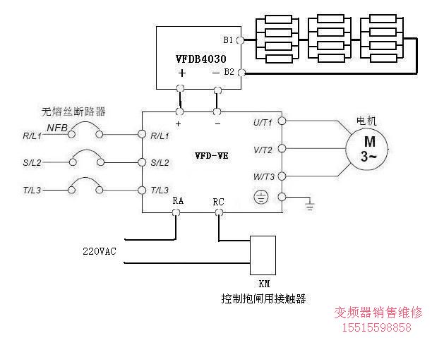 圖2外置剎車(chē)單元VFDB4030電原理圖