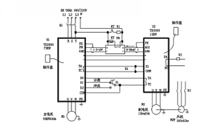 (1)變頻器選型:對主變頻器沒有特別要求,副變頻器要求能屏蔽輸入缺相保護。如果離心機需要恒力矩控制,應選用矢量控制變頻器。