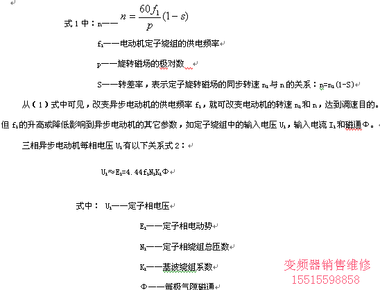 交流異步電動機(jī)的變頻調(diào)速的原理,可從異步電動機(jī)的轉(zhuǎn)速方程得出。轉(zhuǎn)速方程如下所示1: