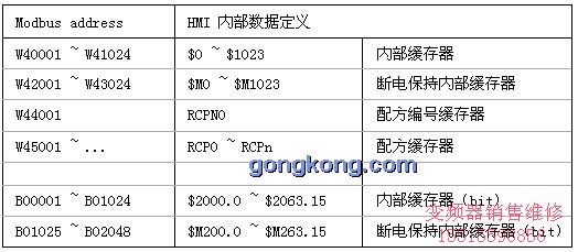 表1 DOP內(nèi)部與MODBUS的對(duì)應(yīng)關(guān)系