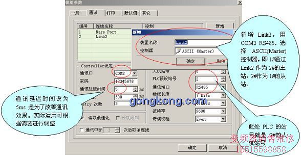 新建一個(gè)Link2,用1#Master HMI的COM2去連接2#Slave HMI,如圖通訊Link2